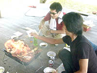 焼肉を焼きながら各自のオプションを持って来ているのが凄いところ!オプションとは自分が食べたい物をあらかじめ自腹で購入して、パブリックな焼肉とは別に自分用に焼いて食べてしまう事です。今回T子ちゃんがしめじバターや豚キムチを自宅で仕込んで持って来ていましたが、分けてくれませんでした!ケチ! |