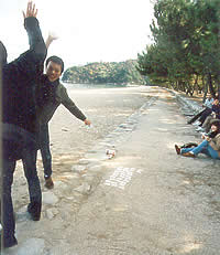 で、無事みんな宮島の本土側フェリー乗り場に付いてビックリ!宇宙人にさらわれたハズのHさんがいるではないか?!『途中でハグれて、急いで宮島口まで来た』との事・・おいおい!『心配しているんだから連絡を入れろ!』と、みんなからブーイングの嵐、罰として“熱いろうそくと太いムチ”で“おしおき”をしておきました。(お仕置き係のO君が・・・)皆さんも団体行動には十分気をつけましょうネ(笑)