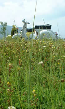 と、言うのは、この日はうちのスクータークラブのメンバーのほとんどに仕事が入ってしまい、開催1週間前になっても参加人数が20人を大きく割りこんでいたからなのです。『どうしよう』・・・と悩みながらも、結局は小ぢんまりと内輪だけで楽しく過ごそう・・って言う独自の勝手な理論を展開した上で、『人数よりも内容の濃い遊びを』をスローガン(死語)に、初夏のツーリングを楽しむ事にしました。