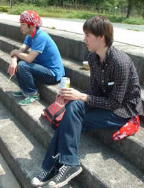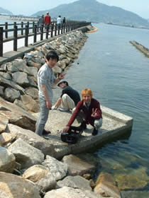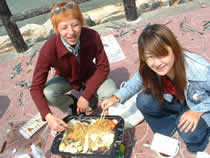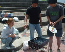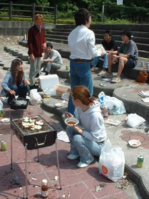 BBQの準備をしているのは、必ずツーリングに参加してくれる大学生コンビ、T君(左)とS君です。左の女の子は今回僕の後ろで参加してくれたM美ちゃんです。後に乗せるからには…勿論、色白美人ですヨ(笑)