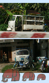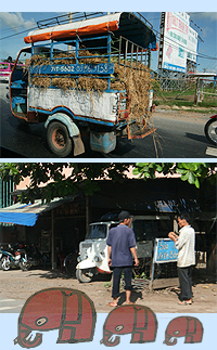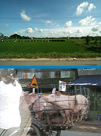 牧歌的な光景に見とれていたら、途中で三輪バイクの荷台に載せられたブタに遭遇・・・ ドナドナですな〜