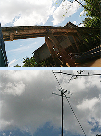 下の写真 川に隣接する民家の屋根にはTVアンテナも・・・ こちらは辺りの景色には似合わず、違和感がありますね〜