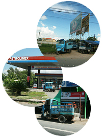 下の写真 道路脇には小さなお店が沢山あります。多くが雑貨店や食堂のようです。お店と言うより、日本人的な言い方をすると、露店商と言った感じです。こちらの写真はその露店の横に停まっていた